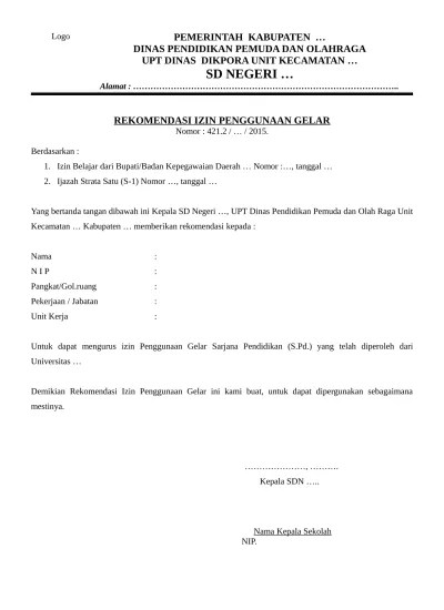 Pimpinan skpd/unit kerja dapat menyetujui atau menolak terhadap permohonan izin belajar contoh surat permohonan kepada bupati. Penggunaaan ijazah dan kenaikan pangkat.